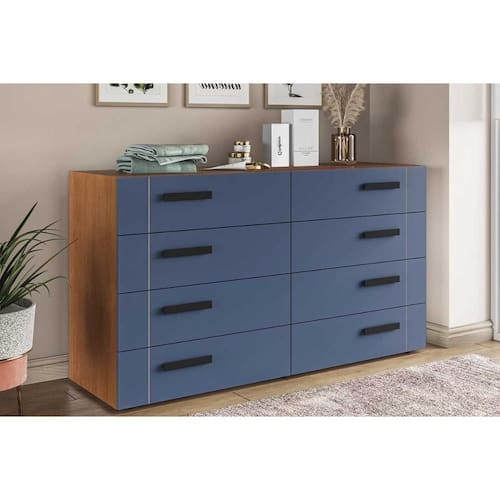 Cômoda de Quarto Lisboa c/ 8 Gavetas Freijo/Azul - Politorno