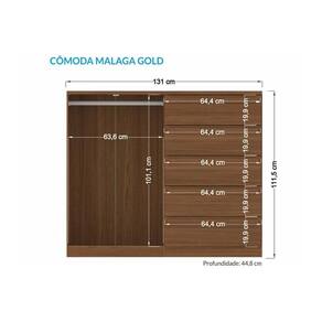 Cômoda de Quarto Málaga Gold 2 Portas e 5 Gavetas Jatoba - Santos Andirá