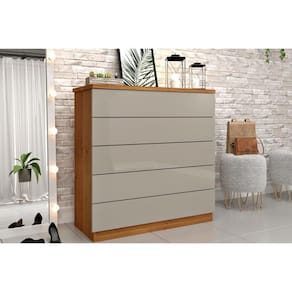 Cômoda de Quarto Premium c/ 5 Gavetas Cinamomo/Off White - Tcil Móveis Marca: Tcil Móveis