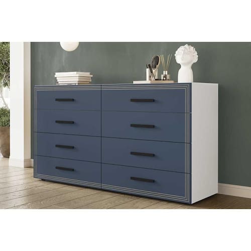 Cômoda de Quarto Valência c/ 8 Gavetas Branco/Azul - Politorno