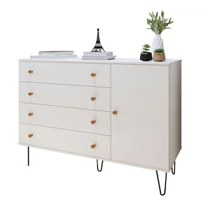 O(a) Cômoda Larissa 1 Porta 4 Gavetas Branco - Minastex é produzido em MDP na escala de brilho Fosco, e possui um grau de dificuldade de montagem: Médio.