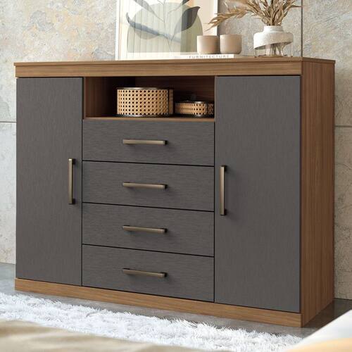 O(a) Cômoda Lincon 2 Portas 4 Gavetas Jatoba/Grafite - Pnr Móveis é produzido em MDP e HDF na escala de brilho Brilhante, e possui um grau de dificuldade de montagem: Médio.