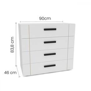 O(a) Cômoda Lisboa 4 Gavetas Branco - Politorno é produzido em MDF e MDP na escala de brilho Semi-Fosco, e possui um grau de dificuldade de montagem: Médio.