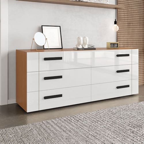 O(a) Cômoda Lisboa 6 Gavetas Freijó/Branco - Politorno é produzido em MDF e MDP na escala de brilho Semi-Fosco, e possui um grau de dificuldade de montagem: Médio.
