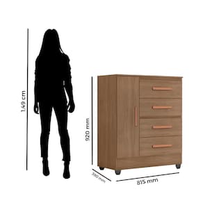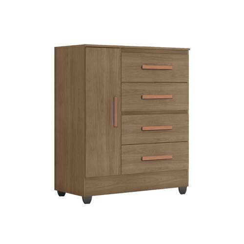 Cômoda Lite 4 Gavetas 01 Porta Nature Cinza – Móveis Leão