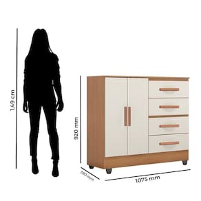 Cômoda Lite 4 Gavetas e 2 Portas Nature Off White Móveis Leão