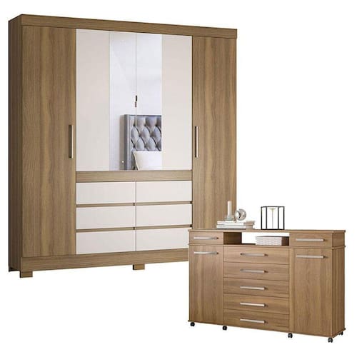 Cômoda London e Guarda Roupa Casal Cádis Amêndola Off White - Demóbile