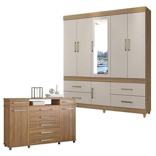 Cômoda London e Guarda Roupa Casal Guarujá Amêndola Off White - Demóbile