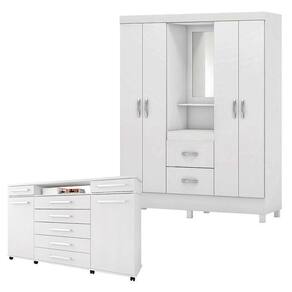 Cômoda London e Guarda Roupa Casal Lord Branco Flex - Demóbile