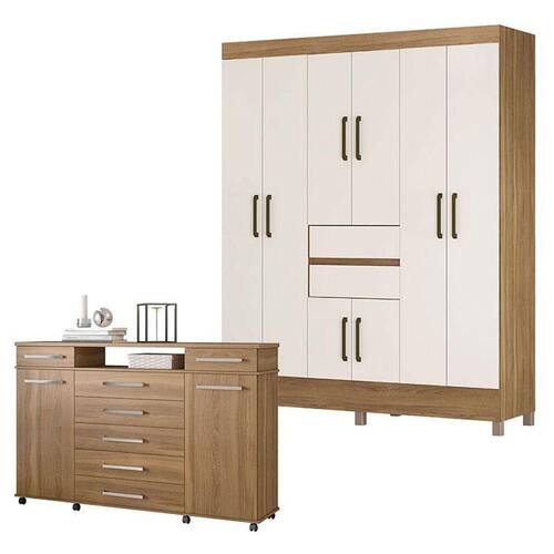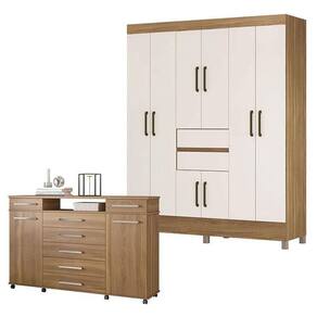 Cômoda London e Guarda Roupa Casal Munique Amêndola Off White - Demóbile