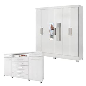 Cômoda London e Guarda Roupa Casal Prático Branco com Espelho - Demóbile