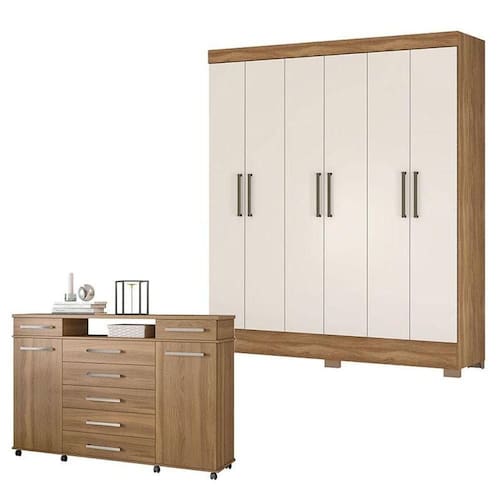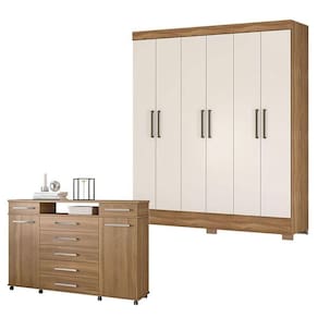Cômoda London e Guarda Roupa Casal Verso Amêndola Off White - Demóbile