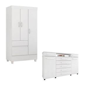 Cômoda London e Guarda Roupa Solteiro Branco - Demóbile