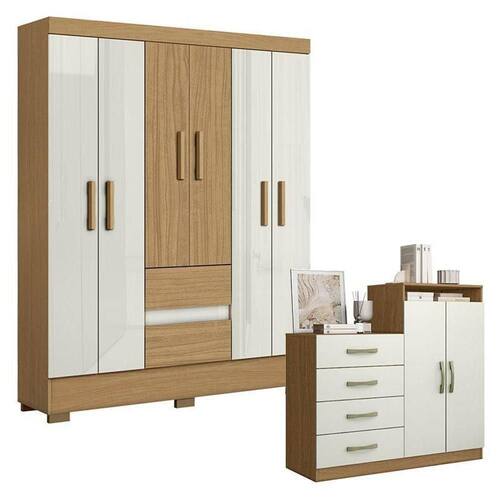Cômoda Londres e Guarda Roupa Casal Coimbra 2005138 Atacama Off White - Aramóveis