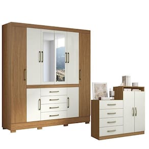 Cômoda Londres e Guarda Roupa Casal Nápole 2045149 Atacama Off White - Aramóveis