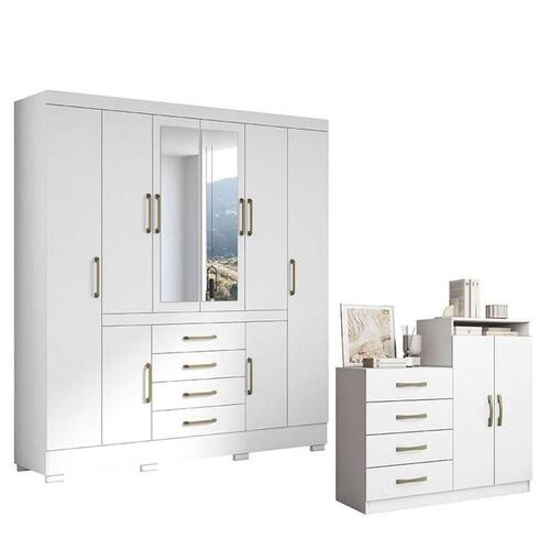 Cômoda Londres e Guarda Roupa Casal Nápole 2045149 Branco Brilho - Aramóveis