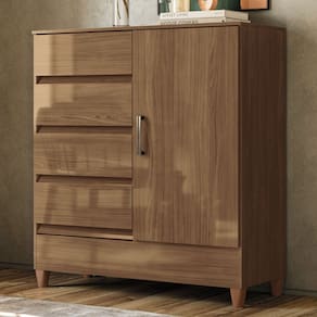 O(a) Cômoda Lux 1 Porta 4 Gavetas Jequitiba - Pnr Móveis é produzido em MDF, MDP e HDF na escala de brilho Brilho, e possui um grau de dificuldade de montagem: Médio.