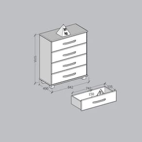 CONTEÚDO DA EMBALAGEM:<Br> 1 Cômoda 4 Gavetas<Br> 1 Kit Ferragens<Br> 1 Manual de Montagem<Br><Br>
