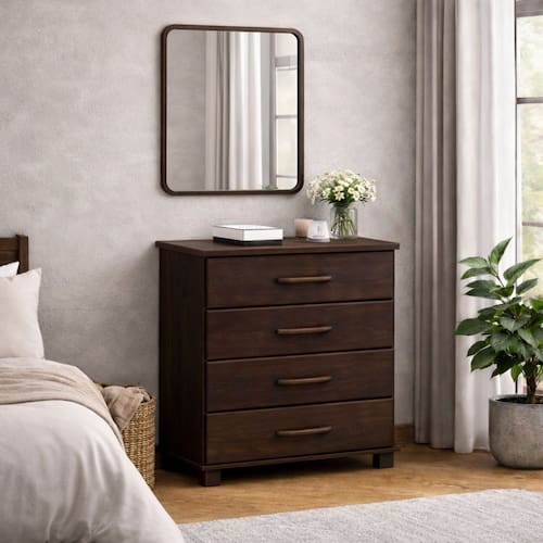 Cômoda Madeira Maciça 4 Gavetas Quarto Gaveteiro Roupas Boho - Café