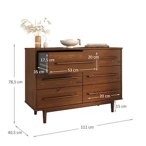 A Cômoda Grande Quarto de Casal 6 Gavetas Madeira Maciça Tecca traz o equilíbrio ideal entre design minimalista e funcionalidade. Seu acabamento em tom castanho valoriza os veios naturais da madeira, criando um móvel de presença marcante e sofisticada.