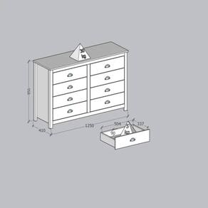 ESPECIFICAÇÕES TÉCNICAS:<Br> Matéria prima madeira maciça de pinus de reflorestamento;<Br> Pintura Acetinada Verniz PU e UV;<Br> Corrediças telescópicas;<Br> Puxadores metálicos em ouro envelhecido;<Br> Pés alongados em madeira;<Br> Peso máximo suportado pelas Gavetas 05kg distribuídos);<Br> Amplo espaço para armazenamento;<Br> Isolamento de peças com manta de polietileno expandido (Isomanta);<Br> Possui manual de montagem;<Br> Sistema de montagem simples e rápida.<Br><Br>