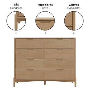 Cômoda Nest, imponente, robusta e marcante uma peça única para seu lar! Desenvolvida por Designer, sua estrutura é composta 100% em Madeira Maciça Taeda 18/16 mm (com presença calorosa e toque orgânico) e com acabamento em pintura brilho 5%. Composta por gavetas com corrediças telescópicas e amplo espaço interno, puxadores usinados estilo cava e lateral de bordas curvas com detalhes canelados. Além de pés cilíndricos reforçados também em Madeira Maciça Taeda de 35 mm. Produto será entregue em 02 volumes.