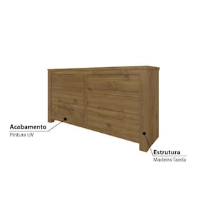 A Cômoda Madma pode transformar o visual do seu quarto e ajudar na organização das roupas. Conta com 6 gavetas com corrediças telescópicas. Sua estrutura em Madeira Taeda, sinônimo de qualidade e durabilidade! O acabamento é de excelente qualidade, possibilitando durabilidade do produto.