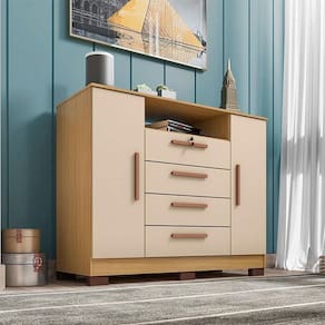 Cômoda Madri 4 Gavetas 2 Portas Carvalho Americano Off White - Incorplac