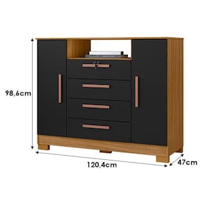 Cômoda Madri 4 Gavetas 2 Portas Carvalho Americano Preto - Incorplac