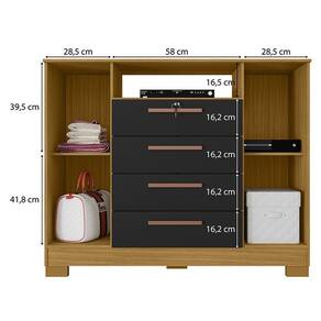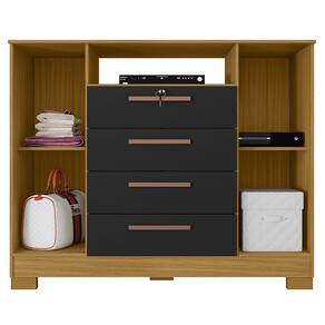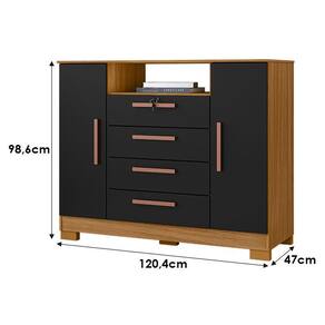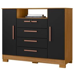 Cômoda Madri 4 Gavetas 2 Portas Carvalho Americano Preto - Incorplac