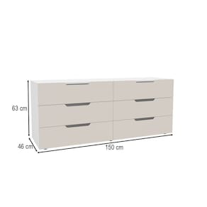 O(a) Cômoda Madri 6 Gavetas Creme/Branco - Politorno é produzido em MDP na escala de brilho Semi-Fosco, e possui um grau de dificuldade de montagem: Médio.