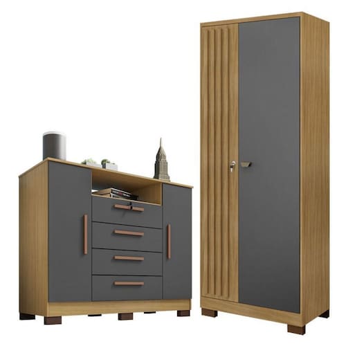 Cômoda Madri e Armário Multiuso Versatile Carvalho Americano Grafite Incorplac