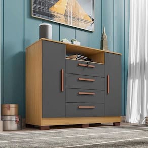 Cômoda Madri 4 Gavetas 2 Portas Carvalho Americano Grafite - Incorplac