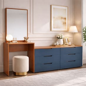 O(a) Cômoda Madrid 6 Gavetas com Espelho Azul/Freijó - Politorno é produzido em MDP na escala de brilho Semi-Fosco, e possui um grau de dificuldade de montagem: Médio.