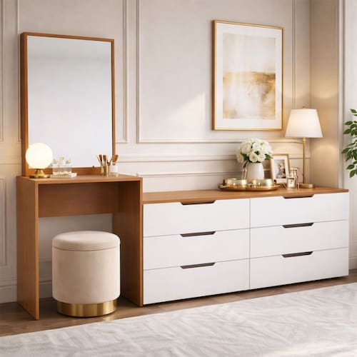 O(a) Cômoda Madrid 6 Gavetas com Espelho Branco/Freijó - Politorno é produzido em MDP na escala de brilho Semi-Fosco, e possui um grau de dificuldade de montagem: Médio.