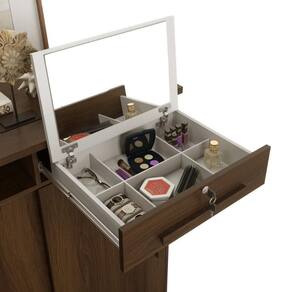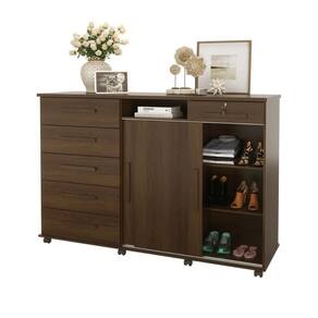 Com o acabamento em Imbuia, esta cômoda oferece um visual clássico e sofisticado, ideal para quem busca um móvel funcional e elegante.