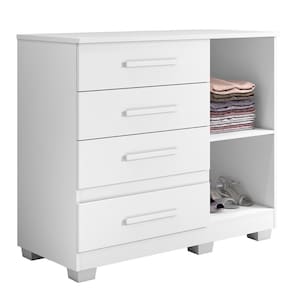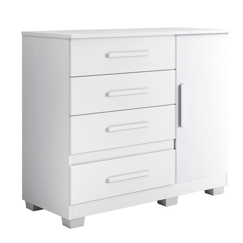 Características: Material principal: MDP Espessura das chapas: 15 mm Escala de brilho: semi fosco Acabamento: Pintura UV Sistema de montagem: parafuso, cavilha e cantoneiras metálicas Quantidade de Gavetas: 4 Quantidade de Portas: 1
