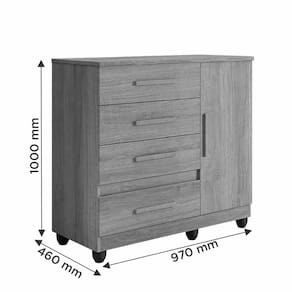 A Cômoda Melissa com seu lindo design traz charme e elegância a qualquer espaço, contém 1 porta e 1 prateleira para acomodar seus acessórios, além de possuir 4 gavetas com corrediças telescópicas que proporcionam uma maior suavidade em seu uso, ideal para pequenos espaços. Sua fabricação utiliza a linha mdp perffect 15 mm, que une a sustentabilidade à inovação tecnológica, proporcionando durabilidade e fácil limpeza; inspirando sofisticação ao mobiliário. A Cômoda Melissa possui pintura UV que conta com boa resistência, é fácil de limpar e é ecologicamente correto, pois utiliza madeira de reflorestamento, evitando o desmatamento.