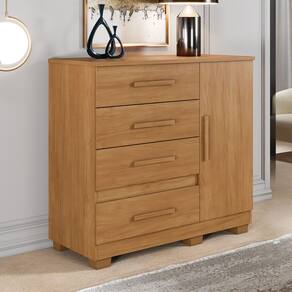 A Cômoda Melissa com seu lindo design traz charme e elegância a qualquer espaço, contém 1 porta e 1 prateleira para acomodar seus acessórios, além de possuir 4 gavetas com corrediças telescópicas que proporcionam uma maior suavidade em seu uso, ideal para pequenos espaços. Sua fabricação utiliza a linha mdp perffect 15 mm, que une a sustentabilidade à inovação tecnológica, proporcionando durabilidade e fácil limpeza; inspirando sofisticação ao mobiliário. A Cômoda Melissa possui pintura UV que conta com boa resistência, é fácil de limpar e é ecologicamente correto, pois utiliza madeira de reflorestamento, evitando o desmatamento.