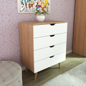 A Cômoda Melissa da Tecnomobili é a escolha perfeita para quem busca estilo e funcionalidade na organização do quarto. Possui design único e moderno cheio de elegância para o ambiente mais importante da casa, o quarto. Possui 04 Gavetas com frente usinada facilitando a abertura das gavetas. Possui amplo espaço e pé cônico que deixa o quarto com um toque delicado e prático para a hora da limpeza. Produzida em MDP de 15mm o que garante durabilidade e resistência, acabamento em BP na cor Amêndoa e Branco UV Gaveta. Peso suportado 05kg no tampo e 04kg cada gaveta. Pé cônico de madeira maciça e corrediças metálicas. Imagem meramente ilustrativa. A decoração do ambiente não acompanha o produto. O produto é entregue desmontado, novo, acompanha nota, manual de montagem e ferragem. Produto Montado: Sim Acabamento da Gaveta: Pintura UV Acabamento dos Pés: BP Altura dos Pés: 23 cm Altura Máxima dos Pés: 23.0000 Ambiente Principal: Quarto codigo_ean: 7900288009302 Complexidade da Montagem: Média: pode ser montado por mais de uma pessoa e/ou necessite de maior conhecimento para montagem Cor: Amêndoa/Branco Cor do Produto: Amêndoa/Branco Cor Flex: Amêndoa/Branco Cor Interna: Amêndoa/Branco Escala de Brilho: Semi-Brilho Escala de Brilho da Gaveta: Semi-Brilho Gaveta com Chave: Não Informações Complementares: 05Kg tampo e 04kg cada gaveta. Itens Inclusos: 1 Kit Ferragem e 1 Manual de Montagem. Linha ou Coleção: CM Manual de Montagem e Instalação: https://product-hub-prd.madeiramadeira.com.br/968454/documents/55c87af2-7b14-46e2-92bf-60da41c4608a25251176417303825693845.pdf Marca: Tecno Mobili Material da Gaveta: MDP Material dos Pés: Madeira Maciça Material Principal: MDP Montagem Flex: Não. Necessita Montagem: Sim Origem do Produto: Nacional Pés Reguláveis: Não Peso: 25,9 kg Peso Máximo por Gaveta: 4 kg Possui Espelho: Não Possui Nichos: Não Possui Pés: 04 Possui Portas: Não Possui Prateleiras: Não Possui Rodízio: Não Quantidade de Gavetas: 04 Gavetas Recomendações de Uso, Manutenção e Limpeza: Para uma limpeza mais efetiva, utilizar apenas pano macio umedecido e sabão neutro. Não utilizar produtos abrasivos. Sapatas Niveladoras: Não Sistema de Montagem: Sim. Aconselhamos que a montagem seja feita por um profissional. Forre o chão com o próprio papelão de nossas embalagens para evitar danos e arranhões e monte o móvel deitado de costas para cima. Após montado não expor o móvel a fonte de calor ou umidade. Suporta Até (kg): 21 kg Tipo de Cômoda: Adulto Tipo de Corrediça da Gaveta: Metálica Tipo de Madeira Maciça dos Pés: Eucalipto Tipo de Puxador da Gaveta: Abertura por Fecho Toque