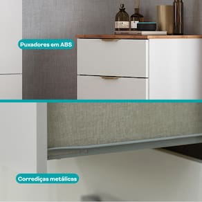 Produzida em MDP de alta qualidade, possui acabamento em pintura UV que garante durabilidade e resistência ao uso diário. Os puxadores em ABS trazem um toque contemporâneo ao visual, tornando a Milan uma escolha versátil para diferentes ambientes, perfeita para quem busca praticidade sem abrir mão do estilo.