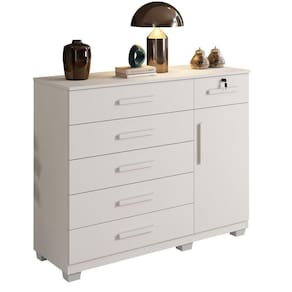 Cômoda Milano 6 Gavetas 1 Porta 1 Prateleira Com Sapateira Branco A Comoda Milano e uma peca robusta, confeccionada em chapa de 15 mm, que garante maior durabilidade e resistencia. Ela possui uma porta, uma prateleira e seis gavetas, sendo uma delas com chave para seguranca adicional. As corredicas telescopicas oferecem um funcionamento suave e eficiente. O produto vem com pes inclusos e puxadores na cor, proporcionando um otimo custo-beneficio. Com a tecnologia MDP Perfect, a comoda combina sustentabilidade e inovacao, assegurando facil limpeza e durabilidade. Sua pintura UV e resistente e de facil manutencao, alem de ser ecologicamente correta, utilizando madeira de reflorestamento e contribuindo para a preservacao ambiental. Uma escolha elegante e consciente para o seu espaco. Caracteristicas: Material Principal Mdp Espessura Da Chapa: 15 Mm Escala De Brilho: Semi Brilho Acabamento: Pintura UV Sistema De Montagem: Parafuso, Cavilha E Cantoneiras Metalicas Quantidade de Portas: 01 Quantidade de Prateleiras: 01 Quantidade de Gavetas: 06
