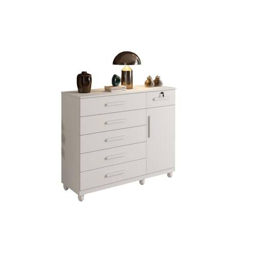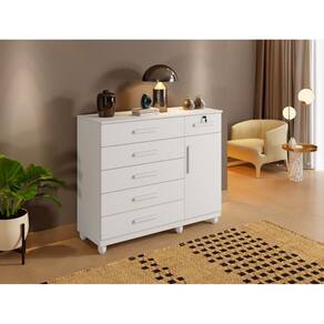 A Cômoda Milão é um excelente móvel! Com ela, seu quarto ficará ainda mais prático e funcional. Ela oferece conforto e comodidade. As seis gavetas contam com amplo espaço interno, além de ótima profundidade, deixando tudo mais organizado. Além disso, possuem corrediças telescópicas e chave em uma das gavetas. Uma delas conta com chave, oferecendo mais segurança. Os puxadores são madeirados, proporcionando um ótimo acabamento ao móvel. Possui nichos para colocar objetos de decoração ou pessoais. É ideal para deixar o quarto mais prático e bonito! Características: Marca: Benetil Estilo: Moderno Origem do produto: Nacional Material principal: MDP Ambiente principal: Quarto Escala de Brilho: Fosco Necessita montagem: Sim Possui gavetas: Sim, 6. Possui chaves: Sim Tipo de Corrediça: Telescópica Tipo de Puxador: MDF Madeirado Possui portas: Não Possui prateleira: Sim, externa. Dimensões: Altura: 115 cm Largura: 122,5 cm Profundidade: 45 cm Peso: 56 kg Garantia do fornecedor: 3 meses Recomendações de uso/manutenção: Limpar com flanela limpa e seca. Não usar produtos abrasivos.