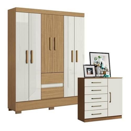 Buscando conjunto de cômoda e guarda roupas ideal para deixar o quarto mais moderno e prático? Com design simples e atemporal, apresentamos a Cômoda Milão e o Guarda Roupa Casal Coimbra desenvolvidos pela Aramóveis, contam com amplo espaço interno para manter a organização das roupas, sapatos e outros pertences, confira e aproveite!