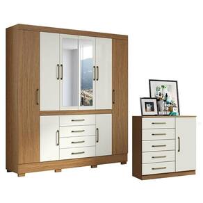 Cômoda Milão e Guarda Roupa Casal Nápole 2045149 Atacama Off White - Aramóveis