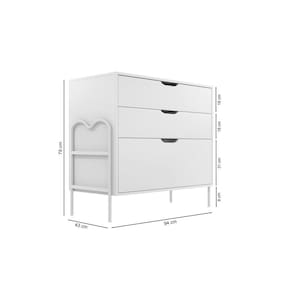 A Cômoda Oasis é um produto moderno e versátil, possui estrutura em aço que remete ao estilo industrial, agregando aconchego e estilo aos mais variados ambientes. Possui 3 gavetas amplas para melhor acomodação de seus pertences. Produto Montado: Sim Acabamento da Gaveta: Pintura UV Acabamento dos Pés: Pintura Altura dos Pés: 9 cm Altura Máxima dos Pés: 9.0000 Ambiente Principal: Quarto codigo_ean: 7909903545430 Complexidade da Montagem: Média: pode ser montado por mais de uma pessoa e/ou necessite de maior conhecimento para montagem Cor: Branco/Branco Cor do Produto: Branco/Branco Escala de Brilho: Brilhante Gaveta com Chave: Não Itens Inclusos: 1 Comoda e manual de montagem Linha ou Coleção: Oasis Manual de Montagem e Instalação: https://product-hub-prd.madeiramadeira.com.br/885303/documents/65b25b49-10b5-44f1-a9db-ba51fcf41db3tamanualmontagemcomoda3gav.pdf Material da Gaveta: MDF Material do Fundo: MDF Material dos Pés: Aço Material Principal: MDF Necessita Montagem: Sim Origem do Produto: Nacional Pés Reguláveis: Não Peso: 35,72 kg Peso Máximo por Gaveta: 5 kg Possui Espelho: Não Possui Nichos: Não Possui Pés: 04 Possui Portas: Não Possui Prateleiras: Não Possui Rodízio: Não Quantidade de Gavetas: 03 Gavetas Recomendações de Uso, Manutenção e Limpeza: Pano levemente umedecido com água, seguido de pano seco, não utilizar produtos químicos ou abrasivos. Sapatas Niveladoras: Não Sistema de Montagem: Parafusos e Ponteiras Suporta Até (kg): 20 kg Tipo de Corrediça da Gaveta: Metálica Telescópica Tipo de Puxador da Gaveta: Embutido