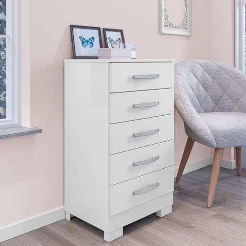 Feito em MDP 15mm.Possui 5 gavetas com corrediças telescópicas.