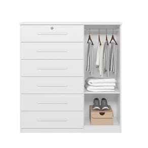 Cómoda Moderna com 6 Gavetas e Cabideiro Vision -MobiBaby - Branco