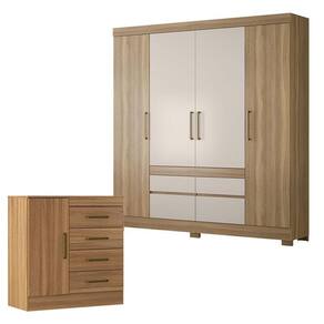 Cômoda Montevidéu e Guarda Roupa Casal Bilbao Amêndola Off White - Demóbile