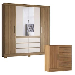 Cômoda Montevidéu e Guarda Roupa Casal Cádis Amêndola Off White - Demóbile